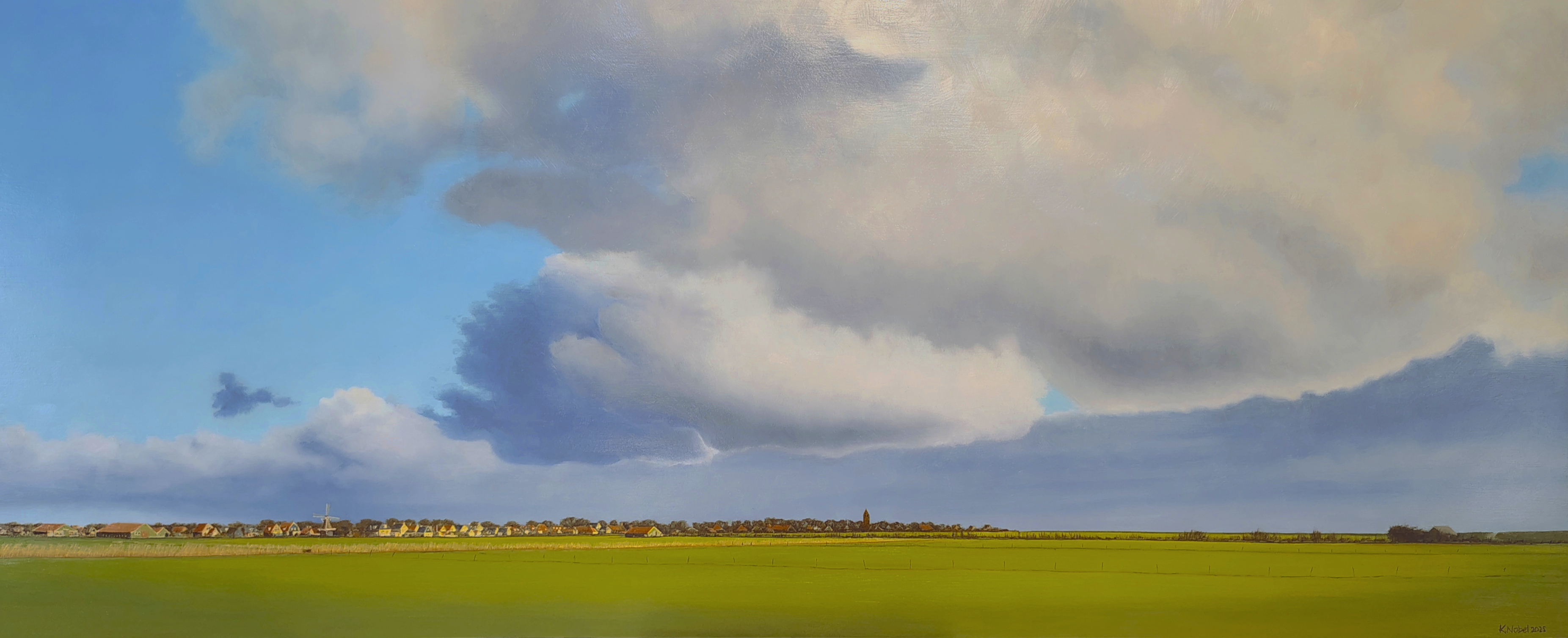 - "Cumuluswolken boven Hollum", 2025 - Olieverf op paneel - 115 x 50 cm. - E 2000.-
